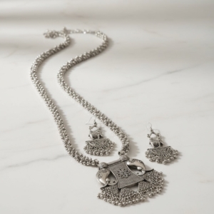Be the first to review “Majestic Elephant Charm Oxidized Silver Necklace Set”