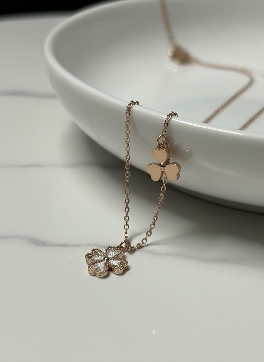 A symbol of charm and grace, this rose gold clover pendant necklace is a timeless piece designed for everyday elegance. The four-leaf clover pendant features a delicate combination of smooth rose gold petals and textured diamond-cut detailing that adds subtle sparkle with every movement.